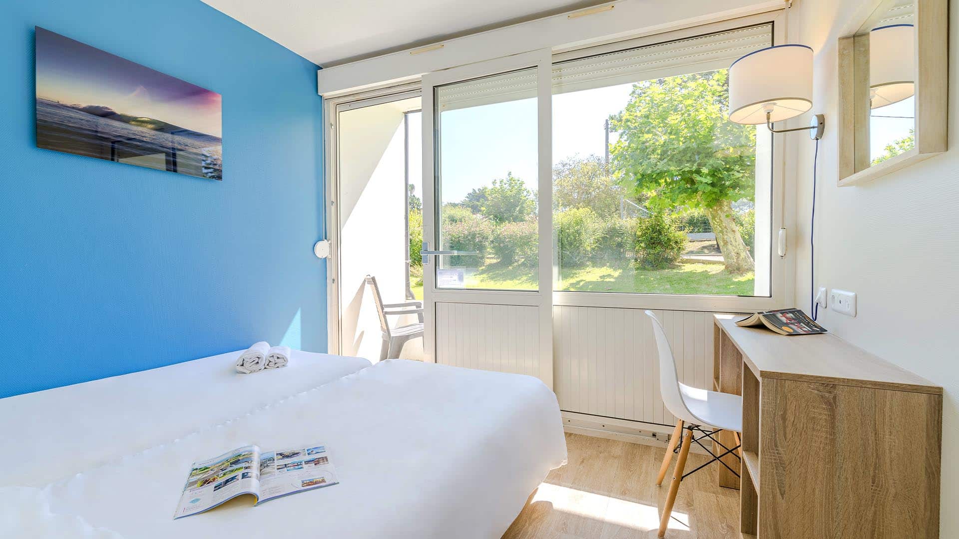 Après une journée riche en activités, les locations du village vacances d’Anglet vous offrent un cocon de tranquillité. Vous avez le choix entre une chambre twin (1 pers ou 2 pers) ou un logement de deux chambres (1 pers, 2 pers, 3 pers ou 4 pers). Chaque logement dispose de lits confortables et d’une salle de bain privative. Votre location s’ouvre aussi sur un balcon avec vue sur l’eau ou sur la forêt basque à proximité. Des services inclus dans votre location ! Azureva Anglet propose des services adaptés aux familles, comme des lits bébé, des chaises hautes pour bébé, ou encore des baignoires pour bébé.  Le linge de lit et de toilette sont inclus dans la location de votre chambre. Mieux encore, les lits de chaque chambre sont faits en début de séjour.